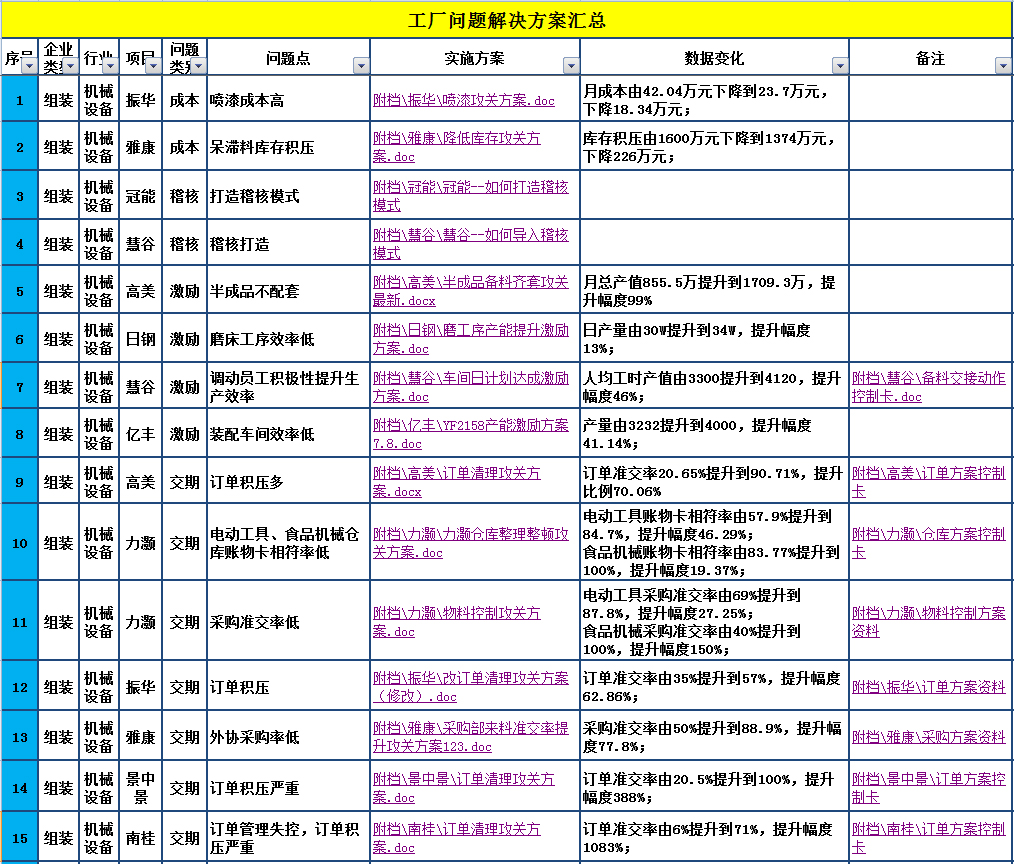機(jī)器設(shè)備行業(yè)工廠問題解決方案匯總